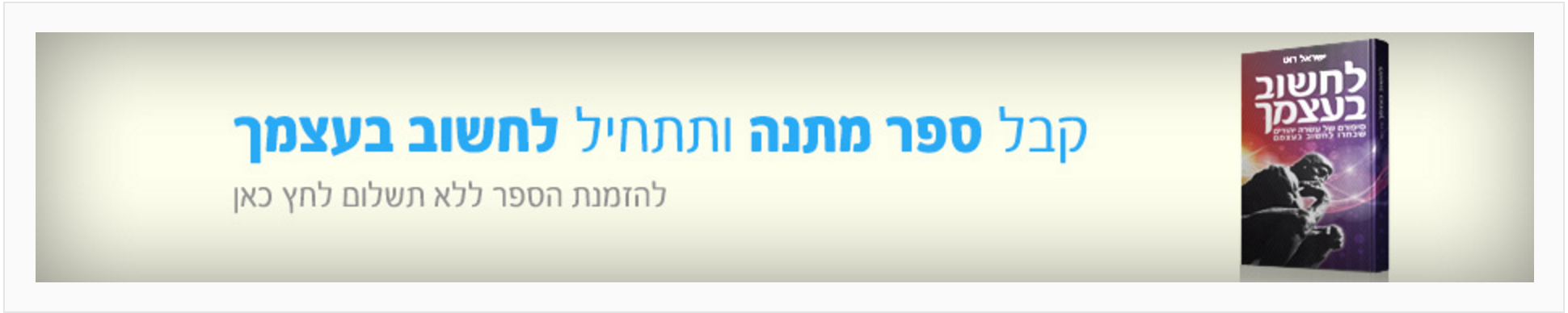 אתר זה מוקדש לאנשים שבחרו לחשוב בעצמם. סיפוריהם אוגדו בספר הנקרא “לחשוב בעצמך”. אם קראת את הספר, עשית כבר צעד חשוב לעבר הנס הגדול ביותר של חייך.